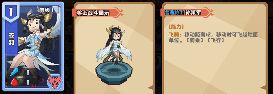 1.在阵容中携带骑乘飞行将士,如苍羽、紫羽、张郃、双杀之翼等。在对战中,高览放在后方与其他飞行单位一同召唤,若是前方飞行将士阵亡,高览能及时获得buff并向前飞行攻击补充伤害。