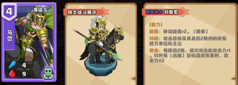 马岱的能力【突击】:对所有【远程】目标造成伤害时,攻击力x2。作为环境中热门精英将士,马岱的突击不仅能穿刺多个目标,而且能直接秒杀大多数【远程】单位。移动范围正好能攻击到狙击主公的蔡瑁,是召唤既能消灭蔡瑁的强敌。