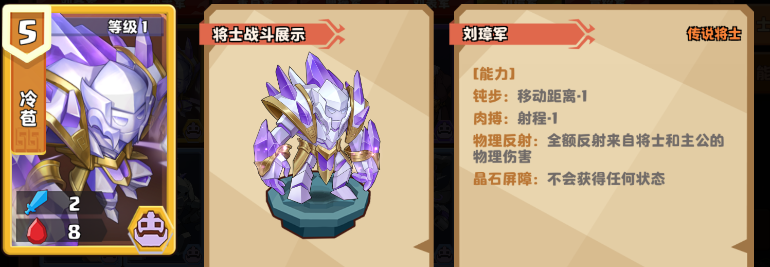待机值为1的重甲将士,而且能力具有秒杀将士的超强效果,是警戒将士中T0的存在。不受狸猫控制,法伤打击乐金,死毒针对双杀之翼等飞行较肉单位,是抗快的一把好手。虽然是星酱强推的一张卡,但还请主公根据自身构筑的合理性,抉择是否携带沮授哦~