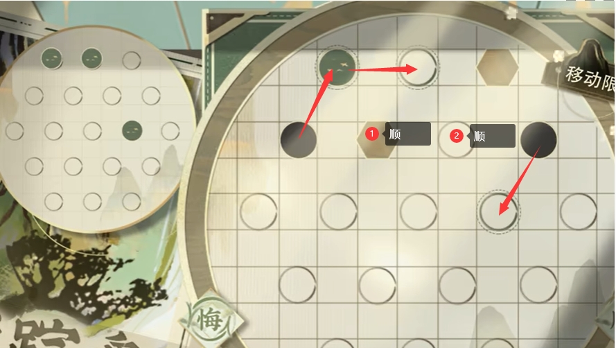 第二步:点击 2-3 顺时针旋转(1-2的棋子会因为禁行点位被弹回),顺利过关。