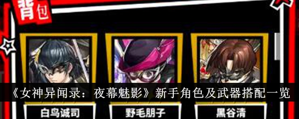 女神异闻录夜幕魅影新手角色及武器怎么搭配?女神异闻录夜幕魅影里面的新手玩家还是很多的呢,那么我们对于角色的选择不是很懂啊,里面也有很多的武器能够给我们去搭配的,那么大家要是不会的来看看吧!