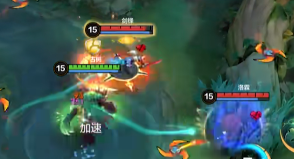 2技能“翠绿护盾”则是古树的生存核心。开启后立即获得一个护盾,能吸收一定量的伤害,同时提升自身移动速度。这使他在战斗中拥有更高的容错率,既能迅速切入战场,也能灵活脱离战斗,是他在敌阵中来去自如的关键。