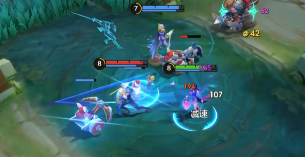 接下来看看她的技能“蝶舞乱红”,这是烛心的主攻技能之一。施放后,她会在扇形范围内对敌人造成魔法伤害,并施加“引蝶”效果。更为重要的是,这个技能还可以减缓敌方的移动速度,并增加烛心自己的移动速度。可以说,这是一个兼具伤害和控制的技能,既能打击敌人,又能提升烛心的机动性,让她在敌人中游刃有余。