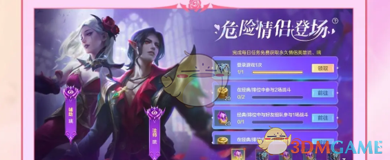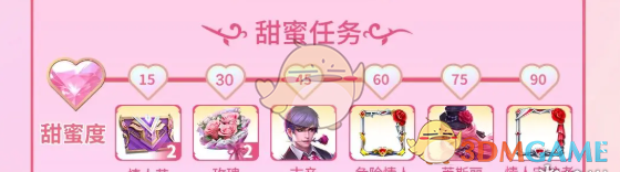 3、当达到指定甜蜜度,即可获得[情人节皮肤畅玩卡]、[玫瑰]、[危险情人头像框]、[情人守护者头像框]等珍稀奖励。