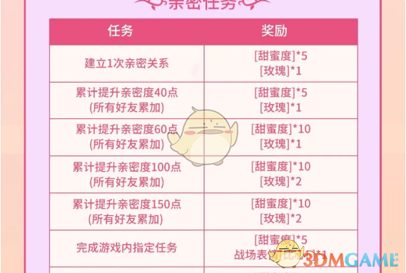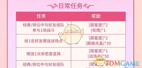 2、通过完成【日常任务】和【亲密任务】可获得任务奖励与甜蜜度。