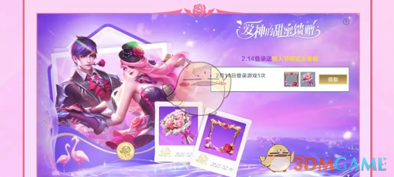 1、2月14日当天,登录游戏即可领取情人节限定头像框[甜蜜邀约]和亲密度道具。