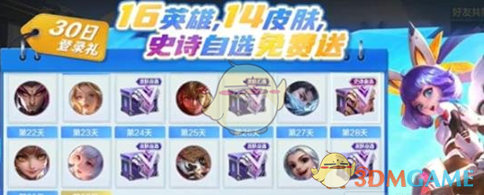 新人签到:新玩家注册后,通过签到可以直接免费获得部分英雄和皮肤。