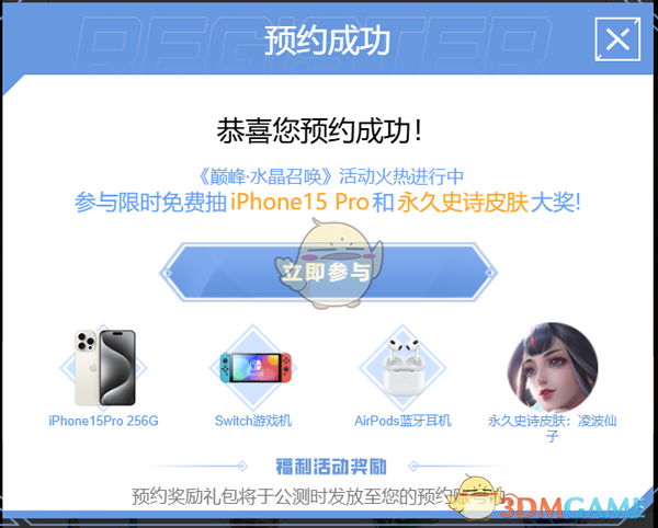 3、最后显示预约成功,即可在公测开服后,领取预约有奖奖励。