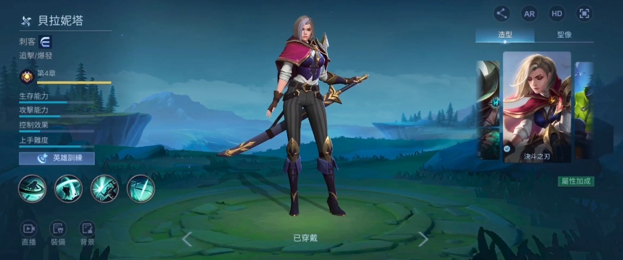 在技能加点顺序上,建议主加一技能,副加二技能,并优先升级大招,这样可以确保贝拉妮塔在前期拥有足够的伤害和控制能力,贝拉妮塔的常规玩法是,有刀意蓄力才会开始主动进攻,一般是利用自己的能力直接切到对面站位中间的,因为贝拉妮塔的大招就是大范围的输出,所以此时大家用上去之后可以找到一个好位置进行突围,因为这个技能还有一定的减速,不怕敌人紧追不舍,如果是差不多将敌人都消灭的话,还可以用一下一技能补点伤害,但是想要同时也能保证自身的安全那就看大家释放技能的时机了,毕竟是要进入敌人中间的,也会存在没跑掉的情况存在。