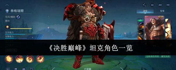 决胜巅峰坦克角色有哪些?坦克角色可以说是队伍里面的支柱,吸收伤害、保护队友以及控制敌人的职责都由它们担任,一个稳定的队伍需要至少一名坦克来确保整体的防御能力和生存空间,决胜巅峰坦克角色有哪些大家也可以看看,下面还详细解析他们的技能特点及适用场景,帮助大家更好地理解和运用这些强力角色。