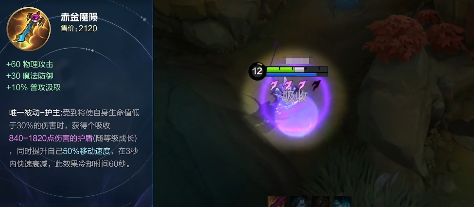 赤金魔陨:这件装备同样属于物理系,但同时也兼顾了防御属性,它的价格为1980金币,可以提供60点物理攻击力、30点法术防御以及10%的物理吸血率,当持有者受到致命伤害导致其健康低于30%时,赤金魔陨会自动触发一个护盾,最多可吸收1820点伤害,并且在此期间内提高50%的移动速度,这项功能极大地增强了使用者的生存能力。