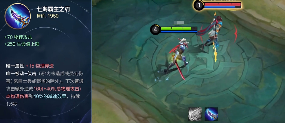 七海霸主之刃:虽然价格相对较便宜,但它所提供的属性却十分全面,有70点攻击力、250点生命上限以及15点物理穿透,更加难得的是,如果在五秒钟内既没有受到任何伤害也没有对任何人造成伤害的话,那么下一次普通攻击将会附加160点额外物理伤害并使被击中的目标减速40%,持续时间长达两秒,这样的设计让持有者能够在关键时刻打出爆发性的输出,同时也具备了一定的自保手段。