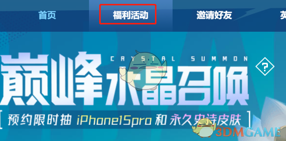 2、完成预约后,在上方导航栏点击福利活动即可看到-巅峰水晶召唤活动。