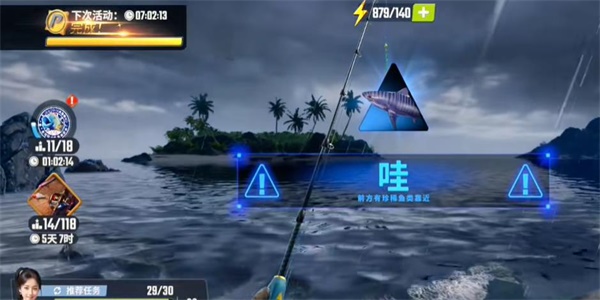 3、选择大堡礁3体力,一直钓直到出鱼骨头,利用小鱼勾引大鱼。