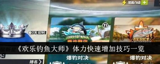 欢乐钓鱼大师体力怎么快速增加?欢乐钓鱼大师里面的体力需求还是比较的大的,那么要是想获取很多的话就需要快速增加了呢,对我们后面的发展还是有帮助的,特别是平民玩家还是很有讲究的,大家要是好奇的话下面来看看吧!