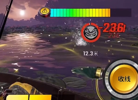 2、有鱼上钩后点击起勾收线,注意:鱼的力气很大需要玩家慢慢收线防止鱼线断裂。