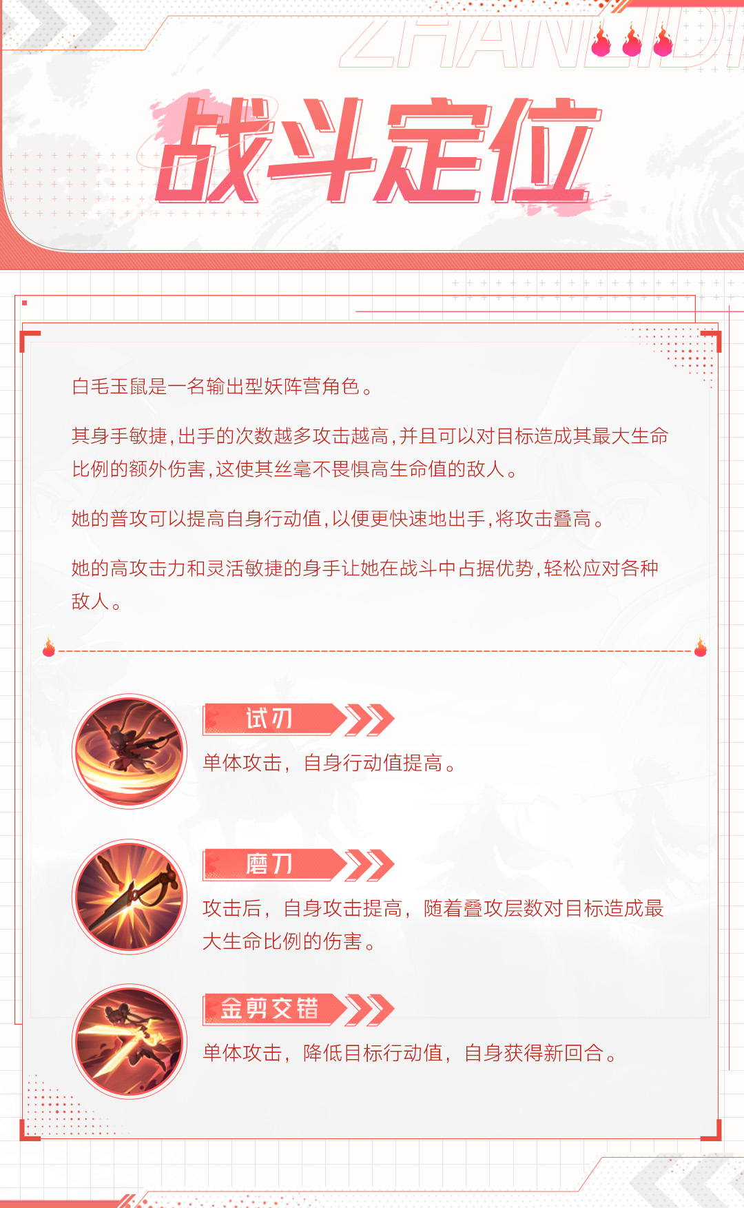 白毛玉鼠是一名输出型妖阵营角色。