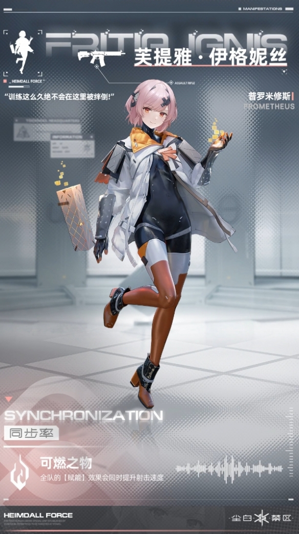 擅长操纵技术型武器和各种作战设备,倾向使用突击步枪,伤害类型为高热