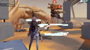 晴对前方大范围内的敌方目标进行1次猛烈斩击,造成动能类型伤害,晴立刻获得50【胜机值】,并进入【以身为刃】状态,此状态下无法通过射击回复爆发能量;