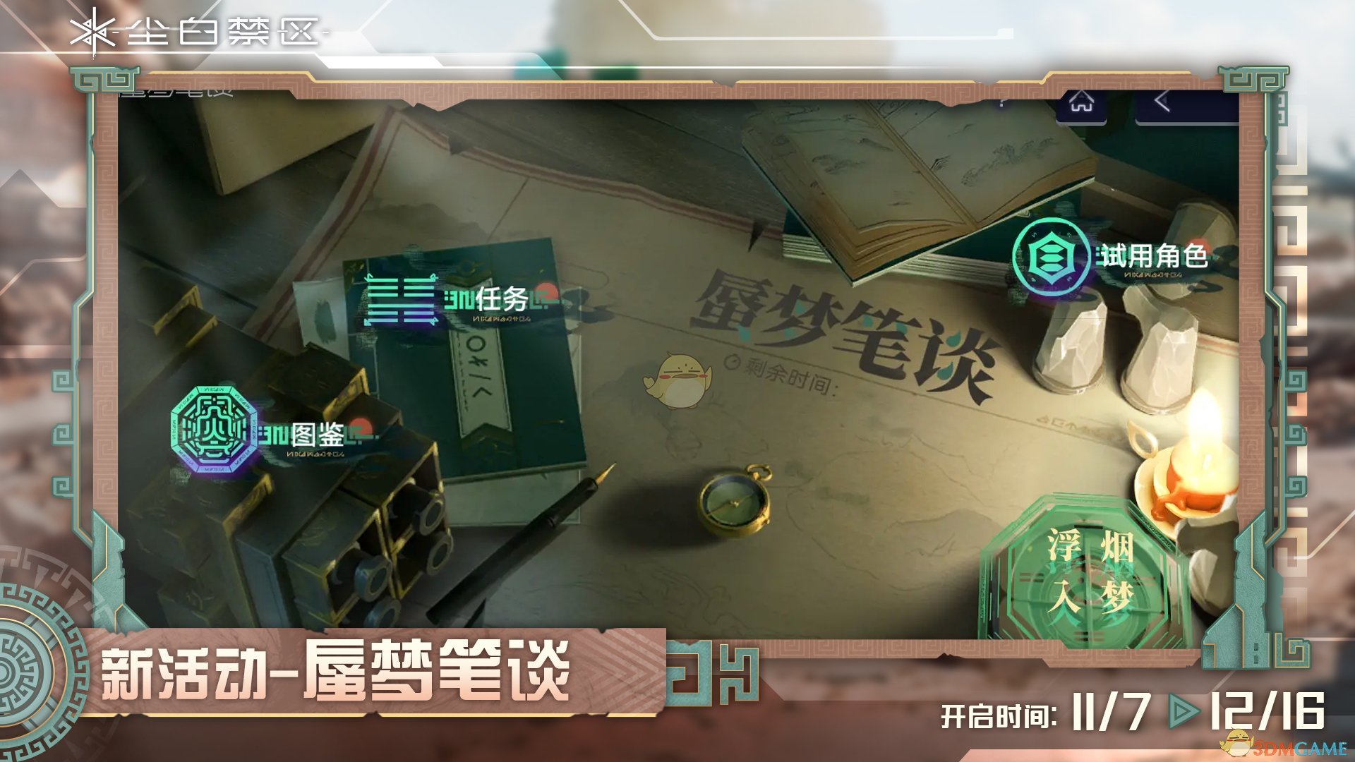 2、活动内容:全新策略肉鸽玩法,在光怪陆离的幻境中,经历一个个奇遇,解决掉拦路的敌人们,获得秘宝,直至探索出蜃梦的真相。