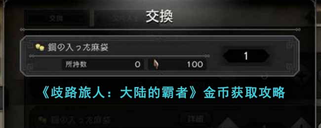 以上就是小编整理带来的《歧路旅人:大陆的霸者》金币获取攻略,更多相关游戏攻略,请点击关注这里下载站!