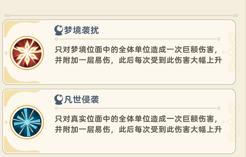 当这两个技能发动时只要躲到对应的位面就可以规避伤害,而且困意也会归零。