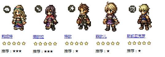 菲欧儿推荐:火力强大的输出角色,单体剑3连击,并有单体高伤害剑攻击技能,同时能降物防20%。