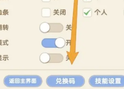 3、进入设置页面后点击图中的兑换码按钮。