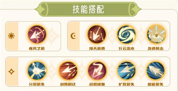 疾风之箭+漫天箭雨+行云流水+急速射击+分裂箭矢+剑舞蹁迁+战略储备+扩散箭矢+盈能箭矢