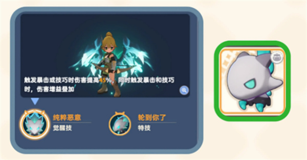 评价:目前最强的宠物,可以增加角色的暴击和伤害,大幅度提高开荒体验。