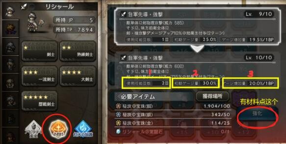 6、操作顺序:队伍-->角色属性界面-->点击技能习得-->点击左下角橙色的必杀技-->右侧点击强化