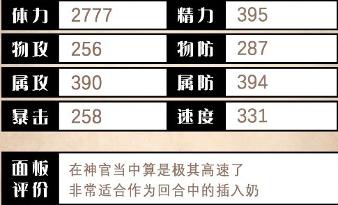 第一位有复活技能的奶,在目前承伤压力还比较大的现版本有能够改变战局的意义。前排整排的瞬间回复与缓回技能都有,在纯治疗的方面非常全面。同时还能兼职一下风/光这两个目前还很棘手的弱点的输出。