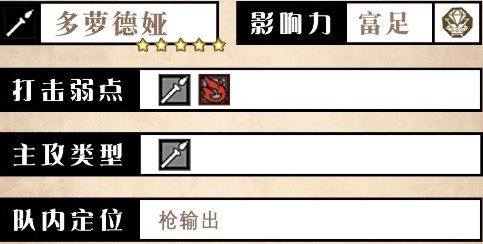 歧路旅人大陆的霸者多萝德娅好用吗,被动可在满血时为全队提供枪增伤。上修后技能的最高段数来到了6段共510倍率,在当前版本遥遥领先,但是如果没有足够的幸运pt(和bp)支持,她的部分技能很可能让人赌得不愿再赌。因此使用她需要做好幸运pt(和bp)的规划。