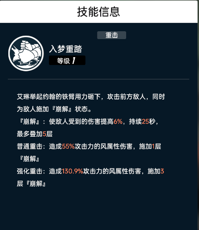 再来说一下对单,伍尔芙使用特技【灵典护体,CD:10s】生成护盾,然后切瑞贝卡上场使用特技【音浪喷发,CD:9s】最后切换艾琳上场使用重击,因为艾琳的重击是可以提高敌人受到的伤害占比的,所以可以配合瑞贝卡的技能使用,但是也要随时注意生存问题,让伍尔芙上场刷盾哦!