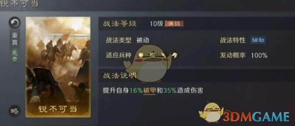 4、锐不可当可以提高一定的输出伤害和破甲效果,推荐法系武将优先选择。