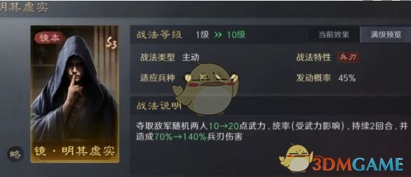 3、明其虚实属于主动型,发动概率相对较低,但是拥有高额的吸收属性,非常好用。