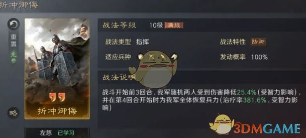2、折冲御侮属于指挥型战法,发动概率为100%,推荐大家优先选择。