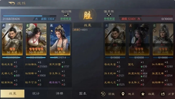 此队的马云禄红度与爆发效果息息相关,白板的话只能打兵刃内战,对阵法师略显乏力。乐进和甄洛的双增伤能让马云禄变身一拳超人。马云禄自带战法红妆缭乱基础就有70%的发动率可以保输出下限,而铁骑横冲的高倍率可以拉高队伍输出上限。