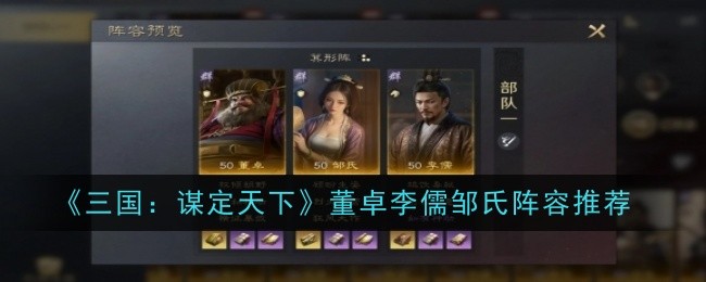 以上就是小编整理带来的《三国:谋定天下》董卓李儒邹氏阵容推荐,更多相关游戏攻略,请关注手游网!