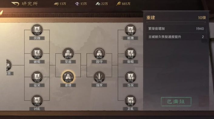 1、玩家可以通过在研究科技时,首先去选择将坚盾和重建优先都给升级到最高级。