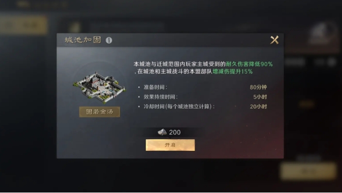 5、可以将玩家的主城迁移到同盟的城池内,在这个方位内可以受到城池加固的buff以及攻防加成。