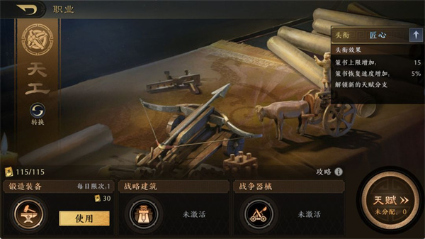 评价:专精于建筑和器械,能够提高战斗中的兵种战力,是攻城和守城中必不可少的职业。