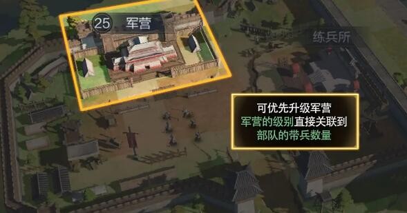 1.在各种建筑中,优先升级军营显得尤为重要。军营的级别直接关联到部队的带兵数量,能直观的提升战斗力!当拥有足够的战斗力时,才能有效地扩展领土,获取更高级的资源,并在战场上取得优势。