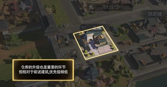 4.仓库的升级也是重要的环节,但它们相对于前述的军营、资源产出型建筑和民居而言,优先级稍低。仓库在早期游戏发展中的影响较小,在资源有限的情况下,应根据当前的需求和资源状况来决定其升级时机。