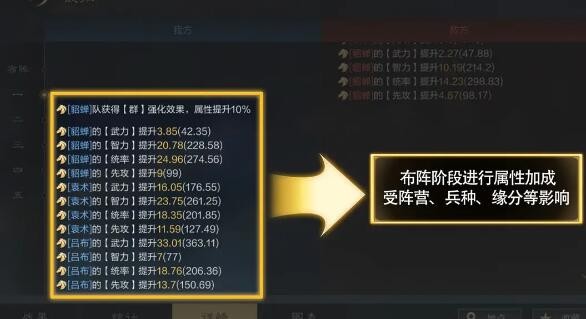 2.第一回合开始前,是布阵阶段,会先计算双方所有属性加成,其中包括:阵营、兵种、缘分、科技所、装备、坐骑、韬略、战法固定生效属性。