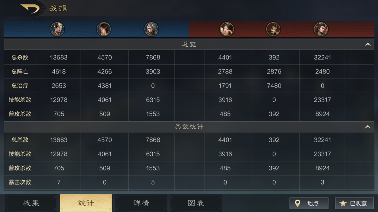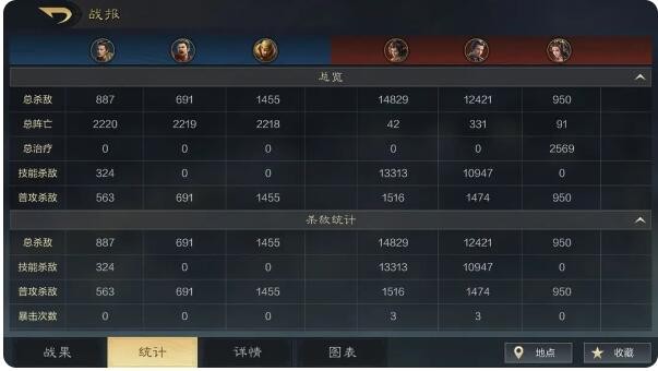 如果我们需要调整,那就需要先看点细节的东西——统计。统计可以向我们展示许多细节内容,可以分回合查看杀敌量、死亡量、治疗量等等,方便调整。