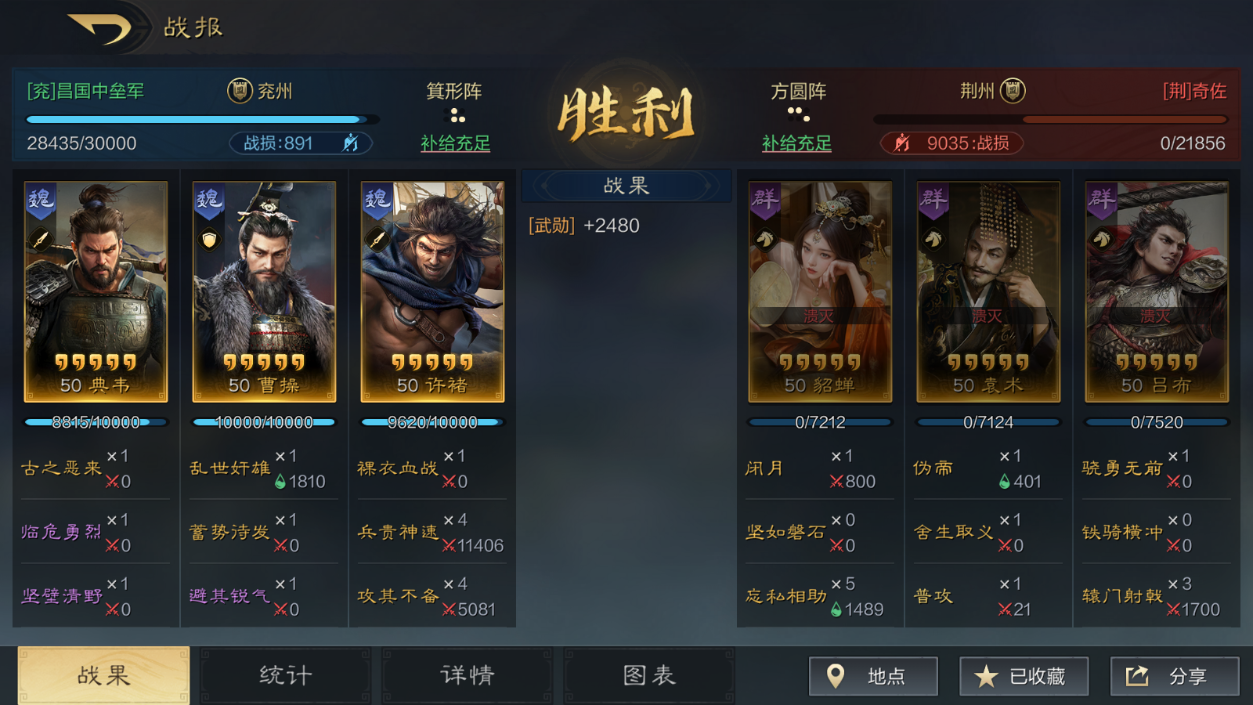想必大家都知道如何看战报了,其实就是对比:敌方输出与我方输出的对比,敌方治疗与我方治疗的对比,战法功能性的对比等等,根据对比结果微调或者更换阵容。
