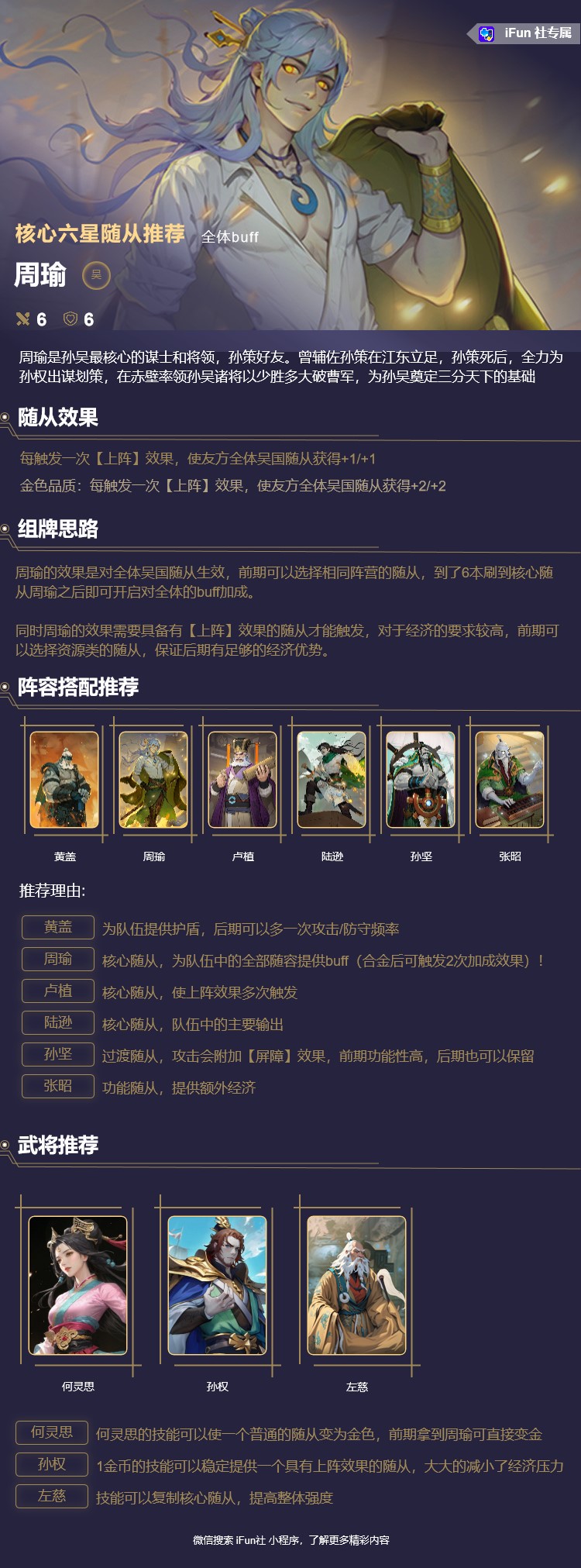 周瑜:核心随从,为队伍中的全部随容提供buff(合金后可触发2次加成效果)!
