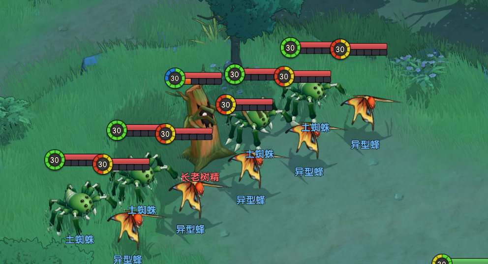 难点:敌人数量多,异型蜂频繁下毒,土蜘蛛不断灭怒气,长老树精不断治疗与释放aoe。
