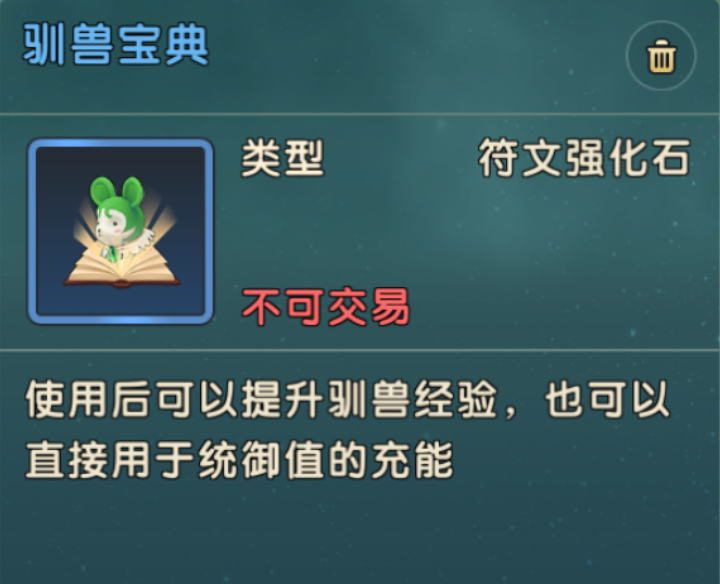 使用后可以提升驯兽经验,也可以直接用于统御值的充能